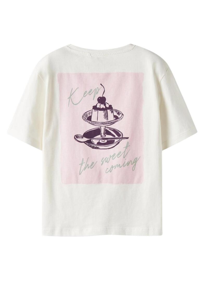 Camiseta Name It Bena com estampa gráfica em tom cru para menina.