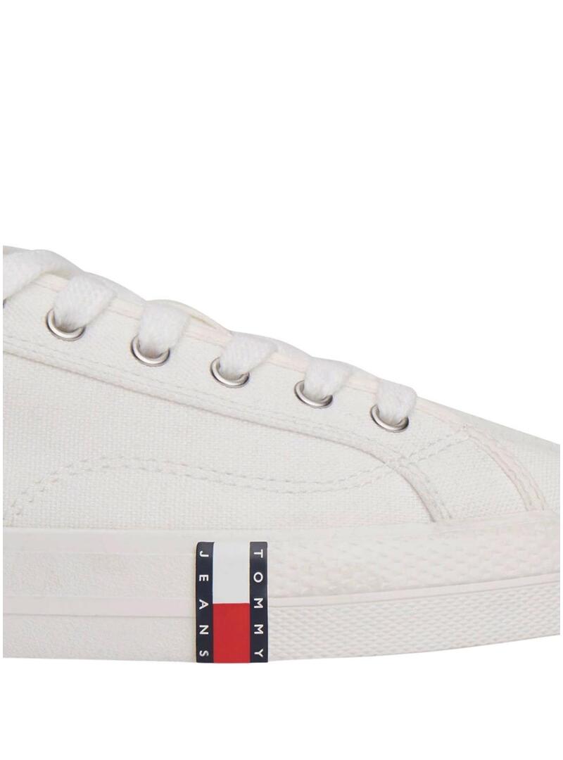 Sapatilhas Tommy Jeans. Modelo Archibe Y2K. Cor branca. Fecho com cordões. Parte superior de lona de algodão. Sola de borracha branca com logotipo no lado exterior.