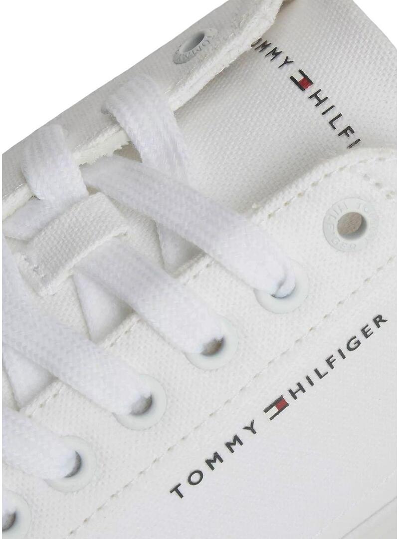 Sapatilhas Tommy Hilfiger. Modelo Vulc Core. Cor branca. Fecho com cordões. Logotipo lateral. Sola de borracha. Perfil baixo. Palmilha removível. Parte superior em lona de algodão.