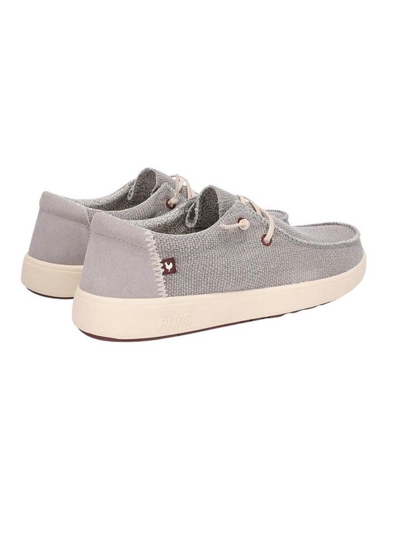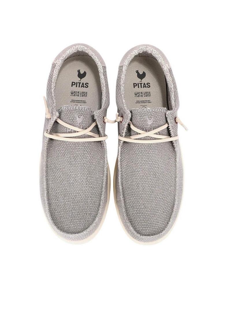 Sapatos Walkin Pitas. Modelo Kilda. Cor cinza. Parte superior em algodão com aspecto lavado e camurça. Forro de algodão 100%. Sola Coast de EVA ultraleve de 3 cm. Flexível e leve. Sola antiderrapante. Palmilha Conforto ergonômica removível forrada em couro. Cadarços elásticos Easy On.