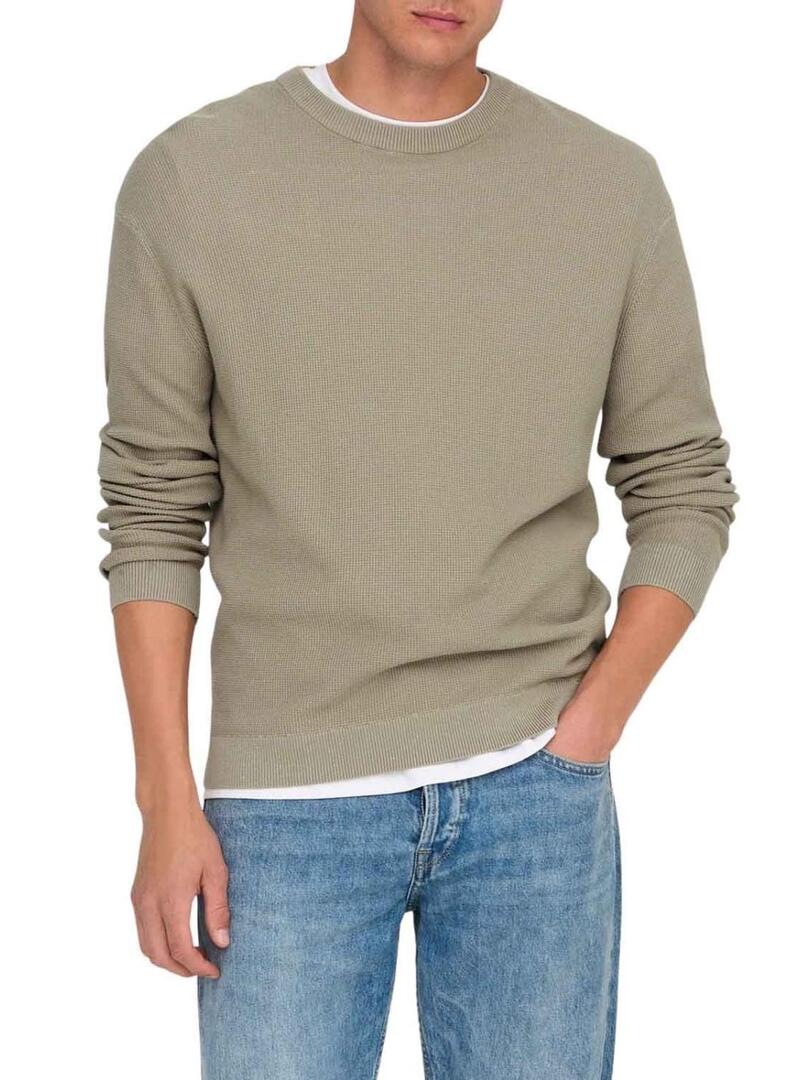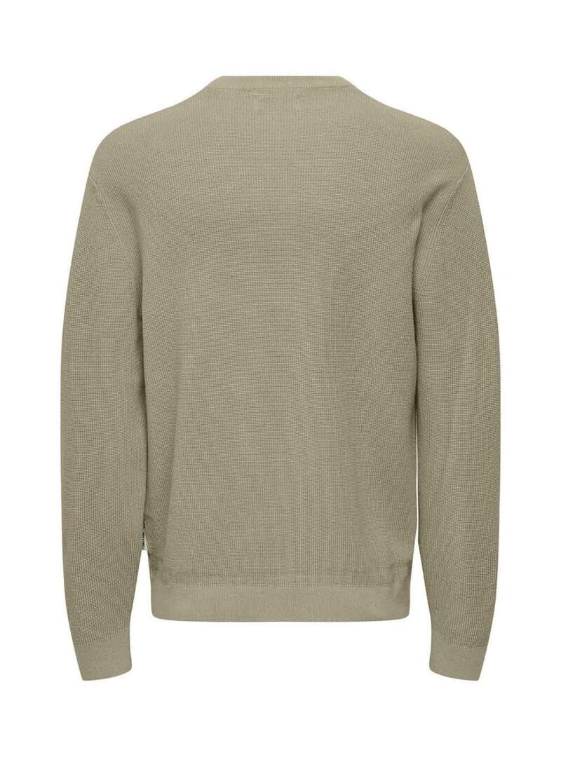 Camisola Only and Sons. Cor bege. Gola redonda. Manga comprida. Malha macia. Acabamentos canelados. Formato relaxado. Ombros ligeiramente caídos.