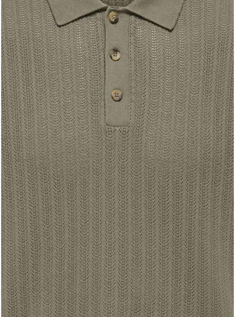 Camisa Polo Only and Sons. Cor verde. Modelo Moon. Gola com três botões. Manga curta. Formato regular. Tecido de malha estruturada.