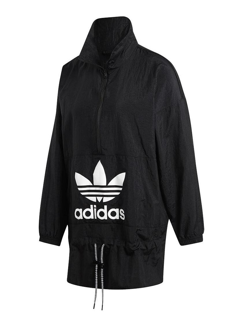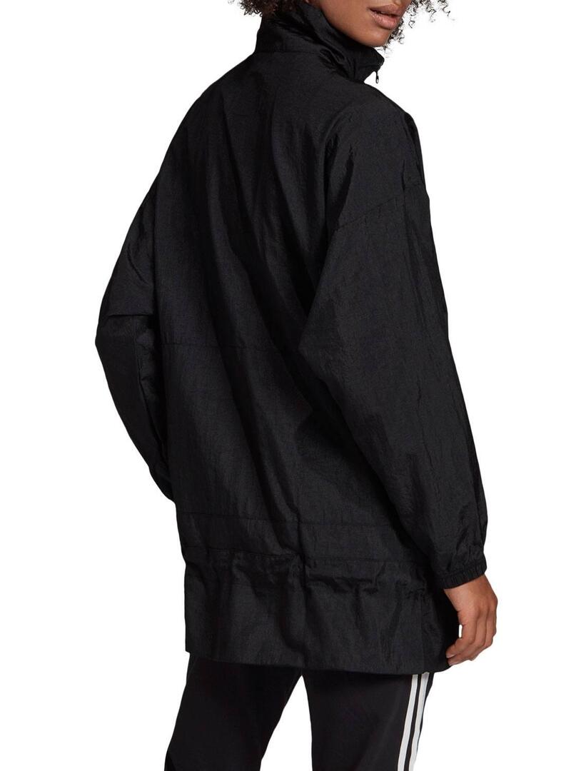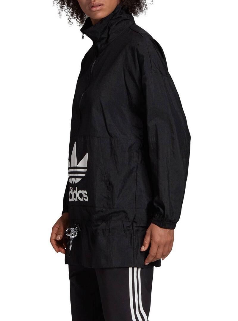 Blusão Adidas. Cor preta. Decote alto. Manga comprida. Grande logotipo no peito. Cordões de cintura ajustável con. Bolso canguru Corte folgado. Decote con zíper. O modelo está usando tamanho 36