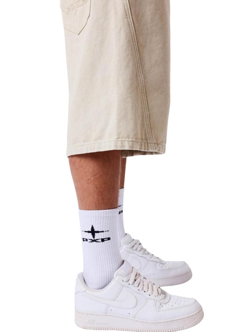 Bermuda Projeto X Paris banda com logotipo bege para homem.