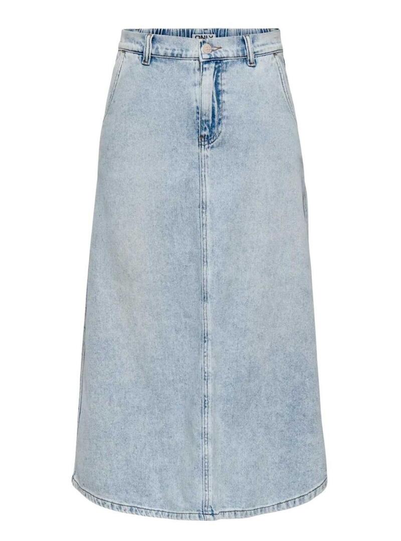 Saia de ganga Only Mindy midi lavada clara para mulher.