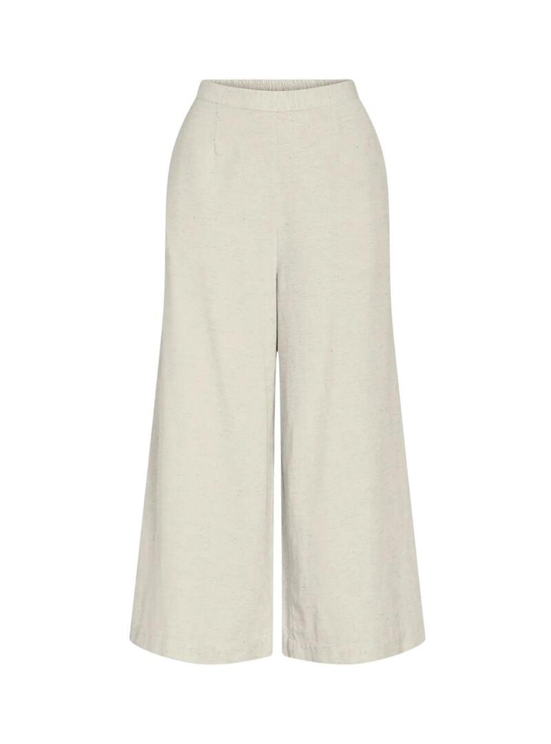 Calças Vila. Modelo Prisilla. Cor branco quebrado. Cintura elástica. Bolsos laterais. Corte culotte. Comprimento acima dos tornozelos.