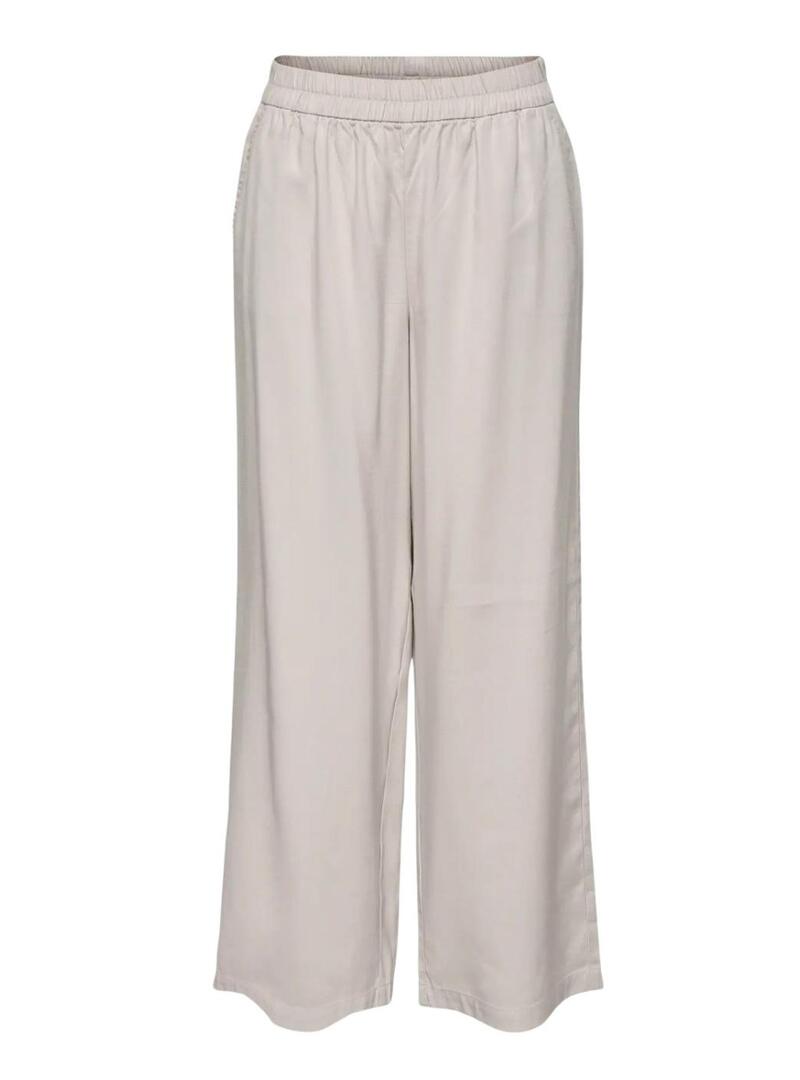 Calça Only. Modelo Laris. Cor bege. Cintura elástica. Bolsos laterais. Perna larga. Estilo básico. Tecido leve.