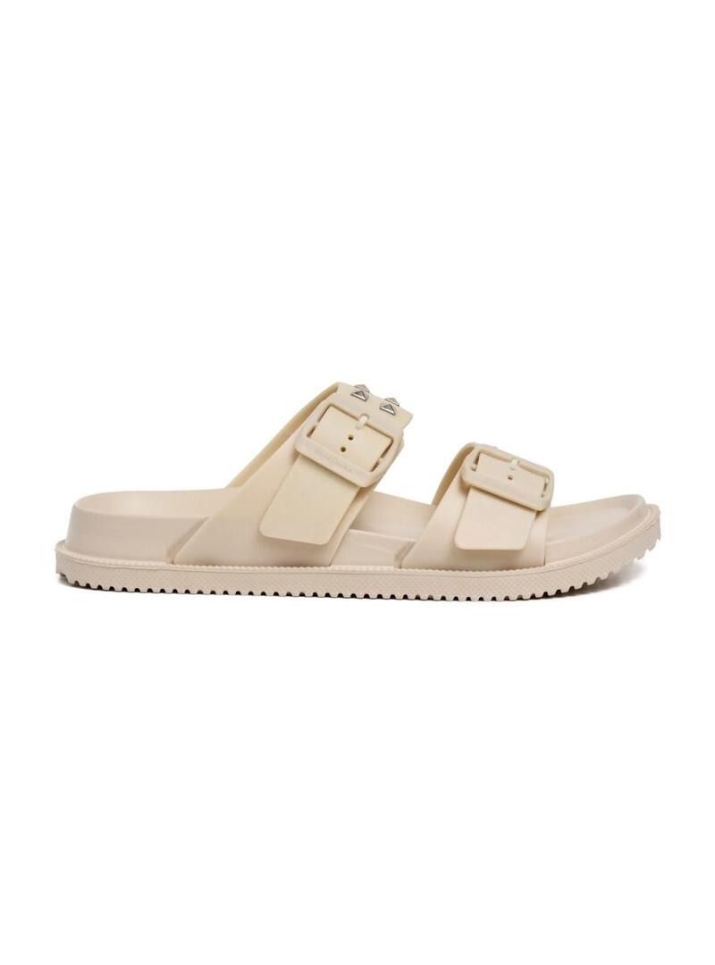Sandálias Pepe Jeans. Modelo Ocean Studs. Cor bege. Dupla correia com fivela de fecho. Tachas prateadas na parte superior. Palmilha conformada.