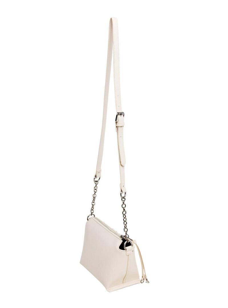 Bolsa Pepe Jeans. Modelo Edilia. Cor branca quebrada. Fecho de correr na parte superior. Alça de ombro ajustável com fivela. Logotipo metálico. Tachas em prata. Bolso interior com acabamento em ribete. Dimensões: 26 cm x 11 cm x 15 cm.