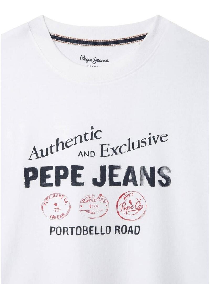 Camiseta Pepe Jeans. Cor branca. Gola redonda. Manga curta. Tecido liso. Estampa frontal com logotipo e texto. Sem fecho. Corte reto.