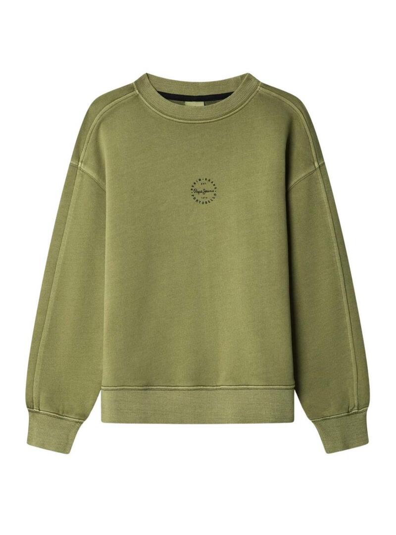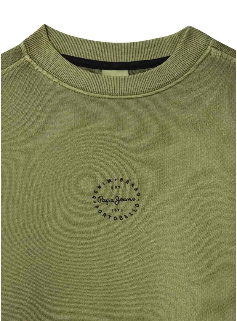 Moletom Pepe Jeans. Modelo William. Cor verde caqui. Gola redonda. Manga comprida. Pequeno logotipo estampado no peito. Acabamentos em canelado no pescoço, punhos e barra. Costura central nas costas. Corte reto. Um básico confortável e fácil de combinar para o dia a dia.
