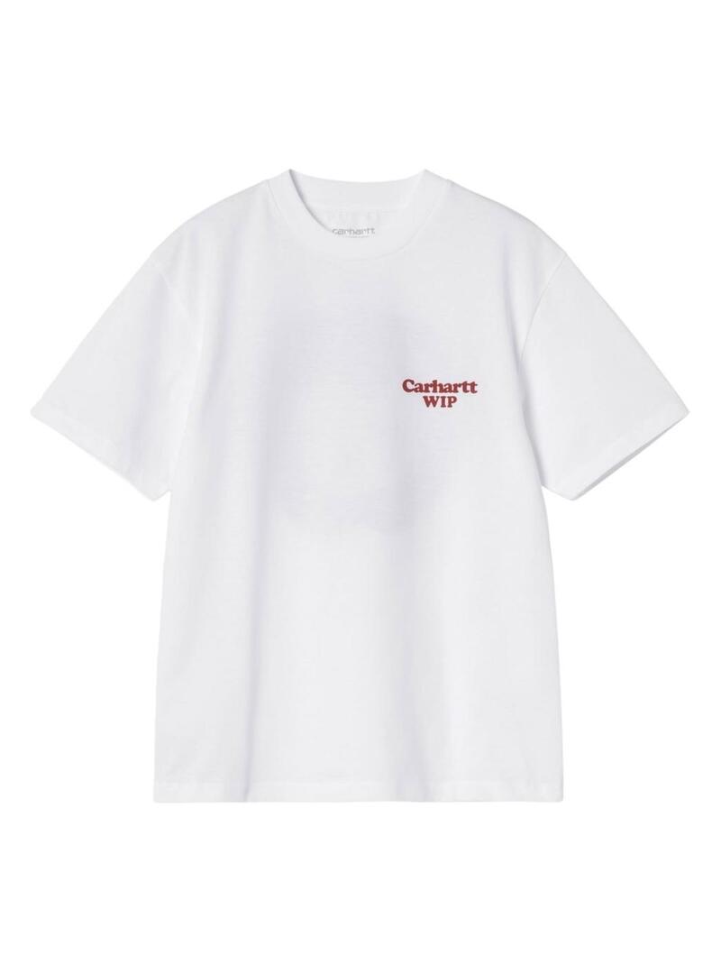 Camiseta Carhartt. Modelo Spoiled. Cor branca. Gola redonda. Manga curta. Ajuste folgado. Logo estampado no peito em vermelho. Ilustração de maçã mordida estampada nas costas.