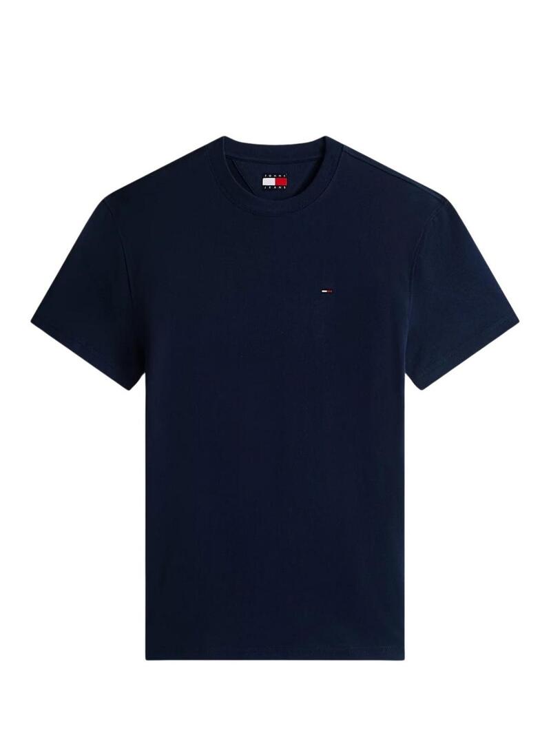 Camiseta Tommy Jeans. Cor azul marinho. Tecido macio. Manga curta. Gola redonda canelada. Bandeira da Tommy bordada no peito. Corte regular. O modelo veste o tamanho M.