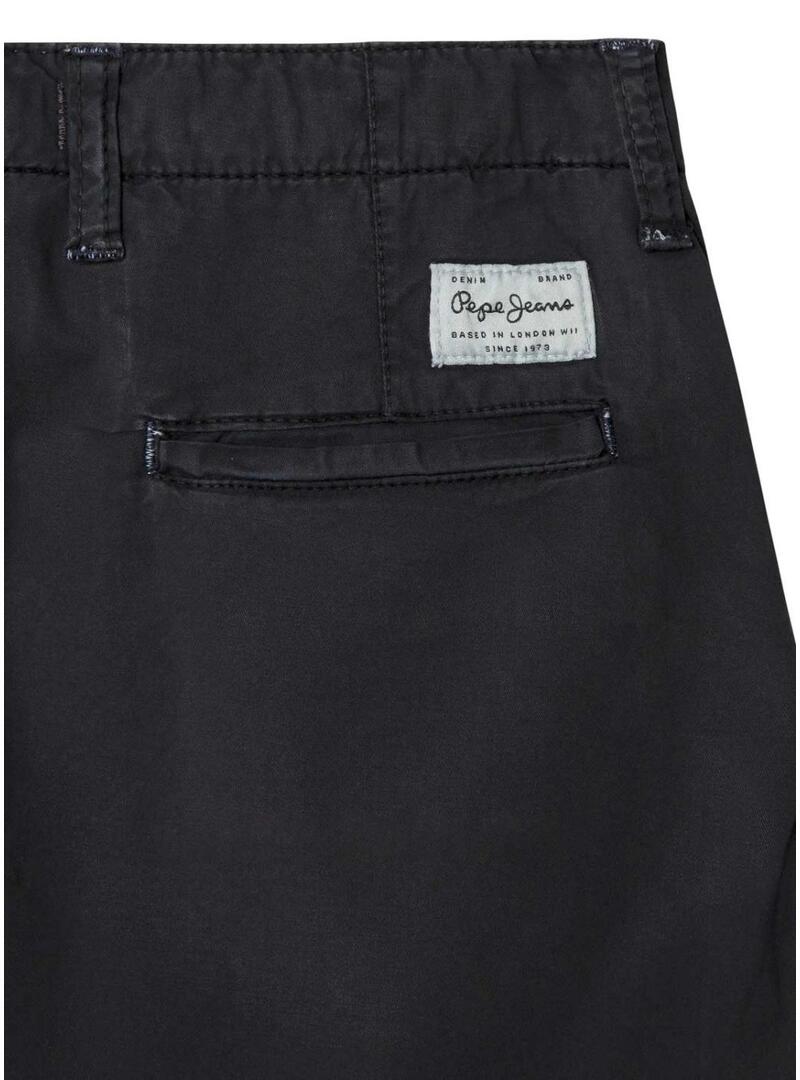 Bermudas Pepe Jeans. Modelo Alexander. Cor preta. Estilo chinês em tecido de popeline elástico. Fecho com zíper e botão. Bolsos traseiros vivos. Elástico ajustável na cintura interior. Etiqueta com logo bordado na parte traseira.