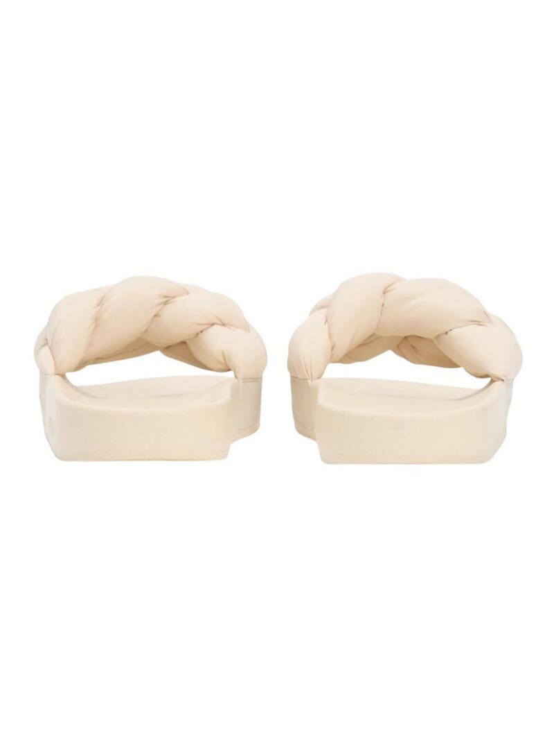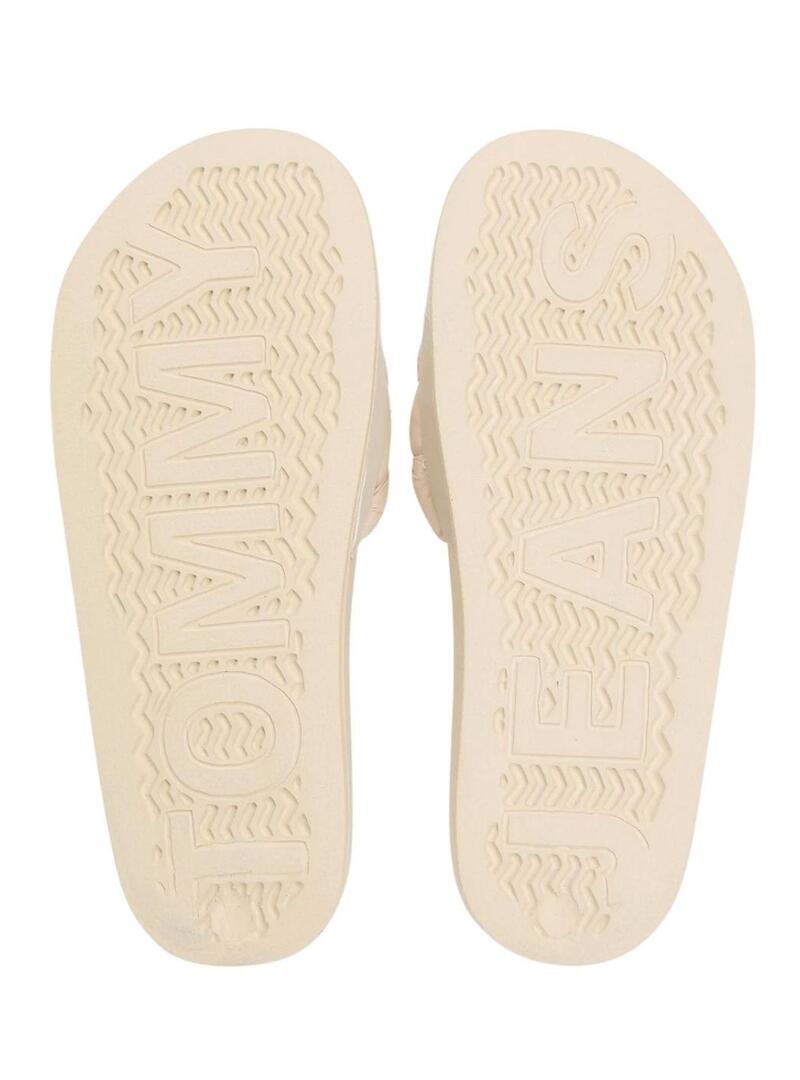 Chinelos Tommy Jeans de tiras trançadas bege para mulher.