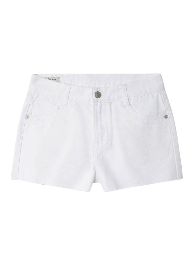 Shorts de ganga Pepe Jeans A-Line branco para menina.