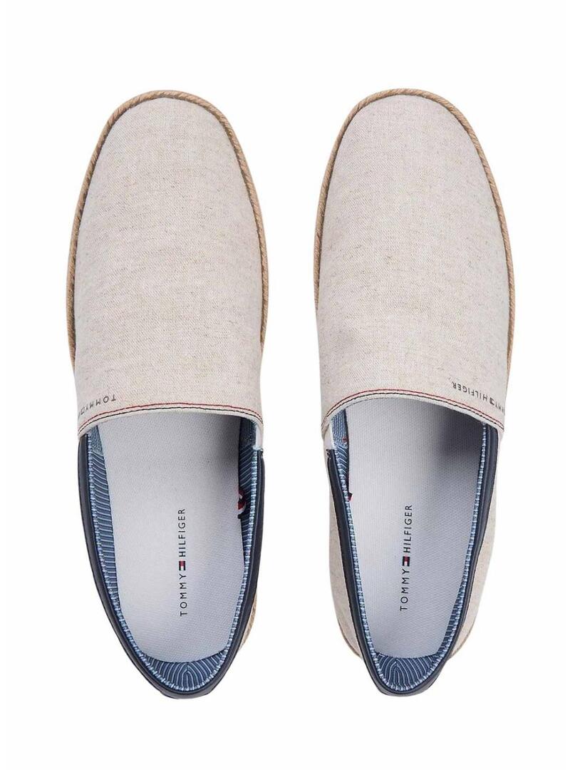 Alpargatas Tommy Hilfiger. Exterior de linho. Cor bege. Sola de borracha. Entressola revestida de juta. Detalhes em couro em contraste. Logo da Tommy Hilfiger na parte superior. Detalhes da marca. Bandeira da marca no calcanhar.