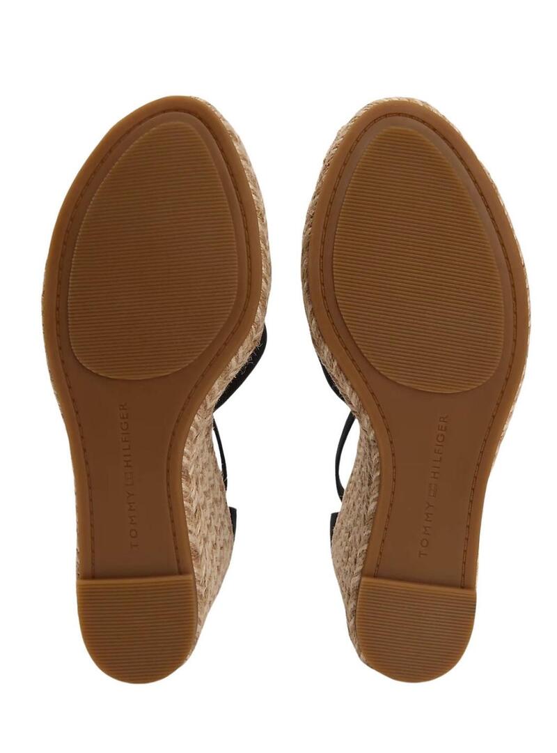 Alpargatas Tommy Hilfiger. Cor preta. Parte superior de lona. Sola de borracha. Salto alto de 10,2 cm. Tira no tornozelo com fivela. Logo da Tommy Hilfiger bordado na parte da frente. Altura da plataforma de 1,8 cm.