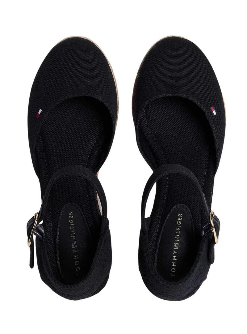 Alpargatas Tommy Hilfiger preto com salto médio para mulher.