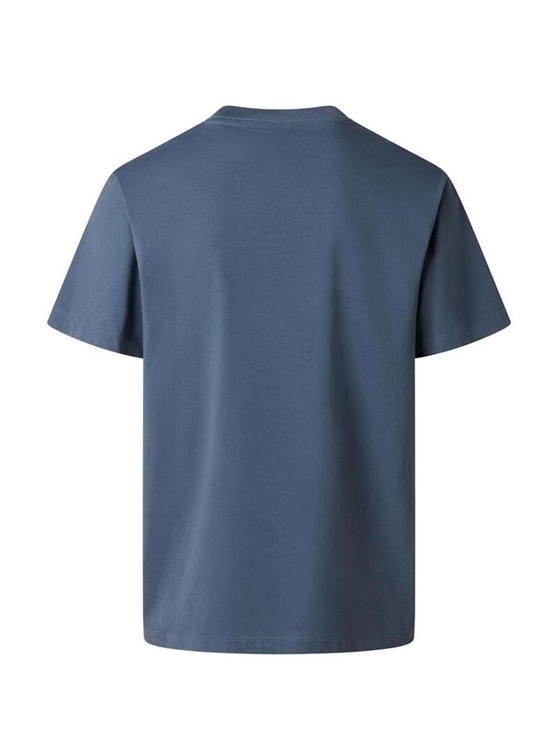 Camiseta The North Face. Cor azul. Ajuste folgado. Logotipo minimalista estampado no peito. Detalhes em branco. Manga curta. Estilo básico.