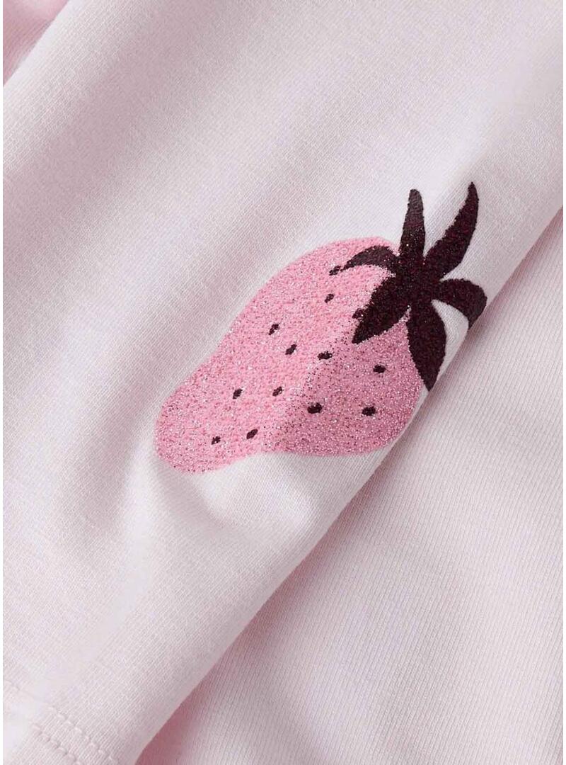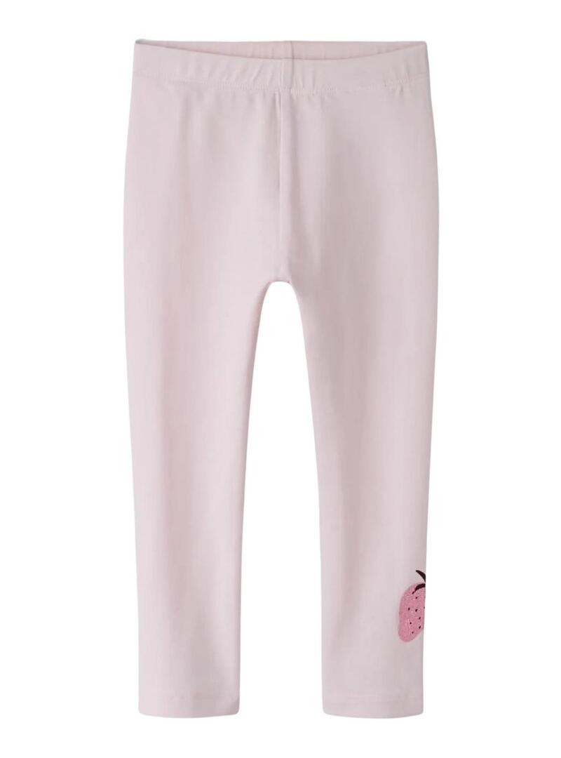 Leggings Name It. Modelo Bilona. Cor rosa. Estampa de um lado da perna. Corte regular. Feito de algodão e elastano.