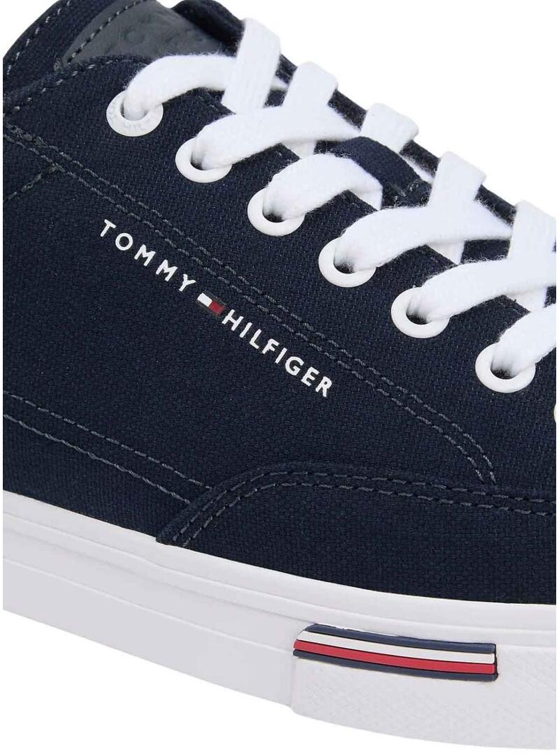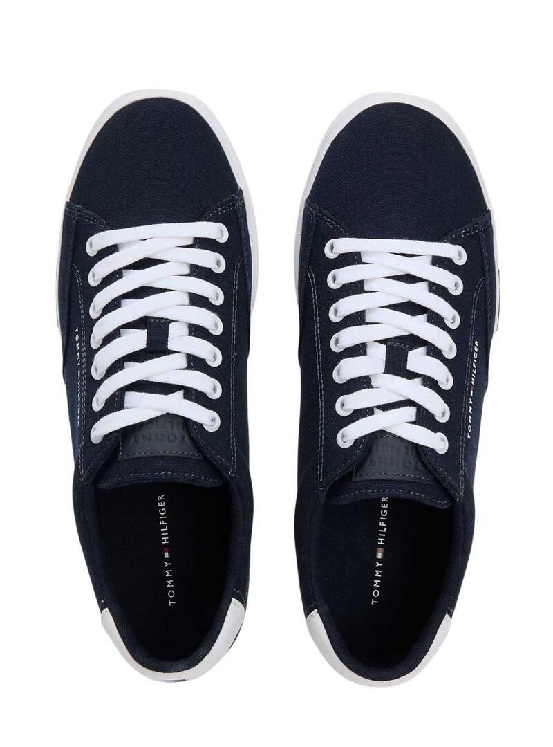 Sapatilhas Tommy Hilfiger Vulc Core em lona marinha para homem.