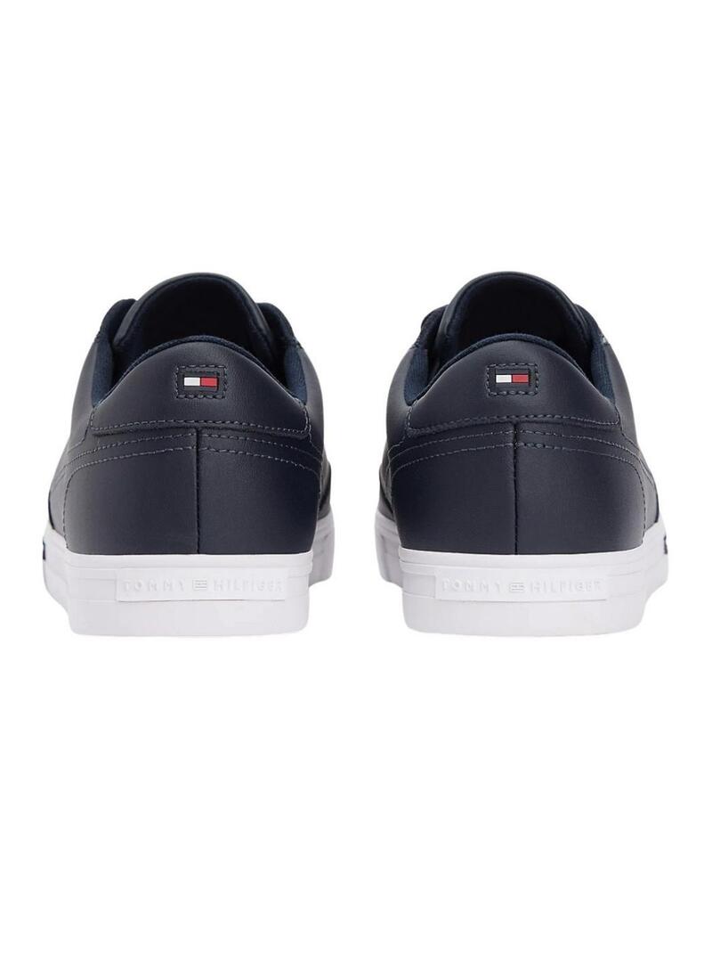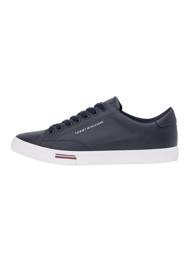 Ténis de couro azul marinho Tommy Hilfiger Vulc Core para homem.