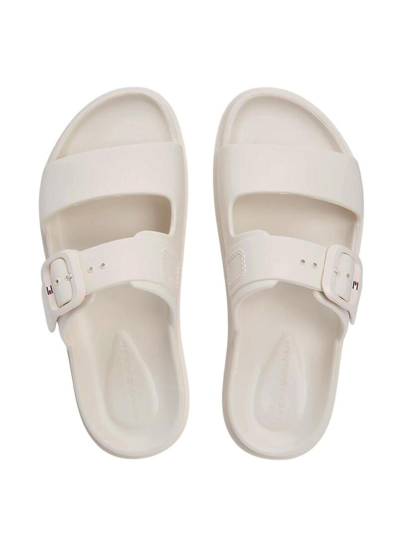 Sandálias Tommy Hilfiger Light de dupla tira bege para mulher.