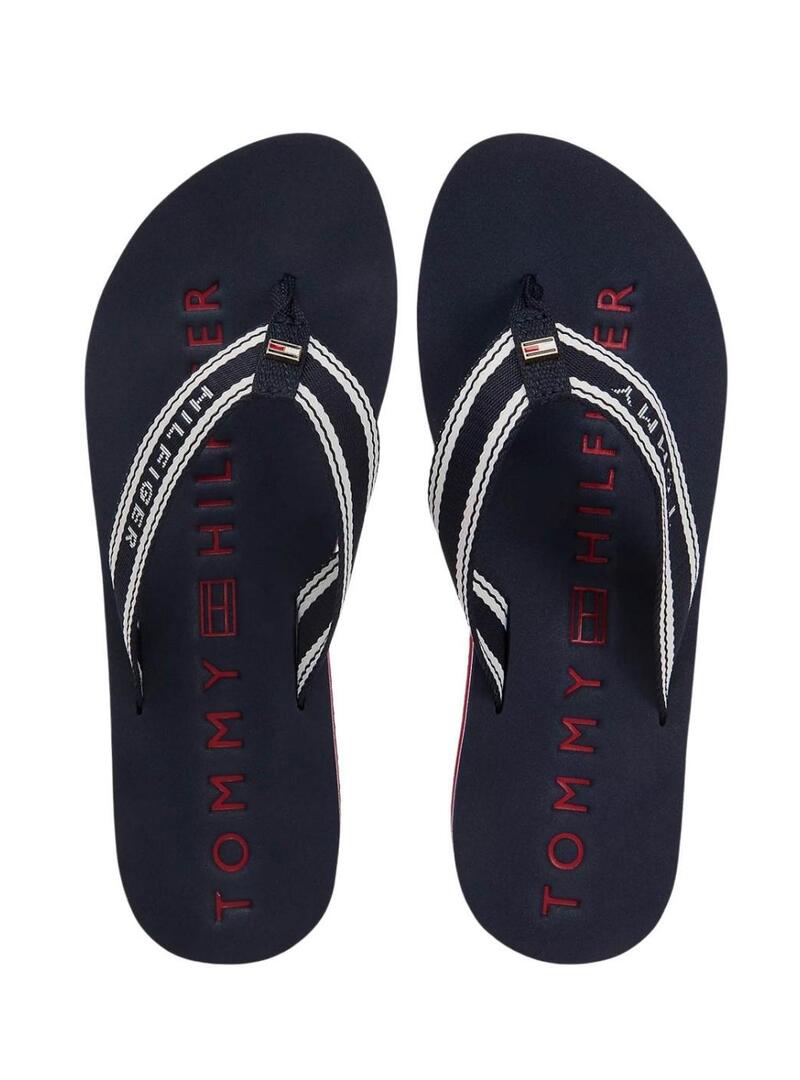 Chinelos Tommy Hilfiger. Cor azul marinho. Sola de EVA. Exterior de poliéster. Tiras trançadas em Jacquard. Design color block distintivo na entressola. Logo esmaltado da Tommy Hilfiger na tira. Altura da sola de 2 cm.