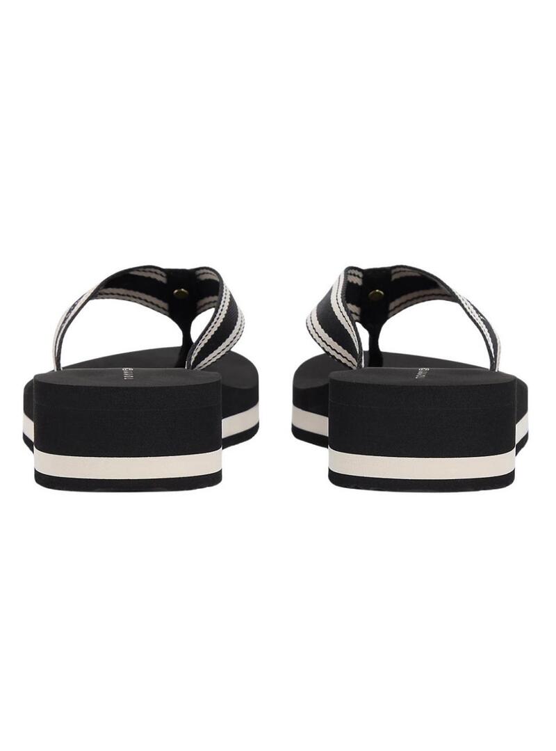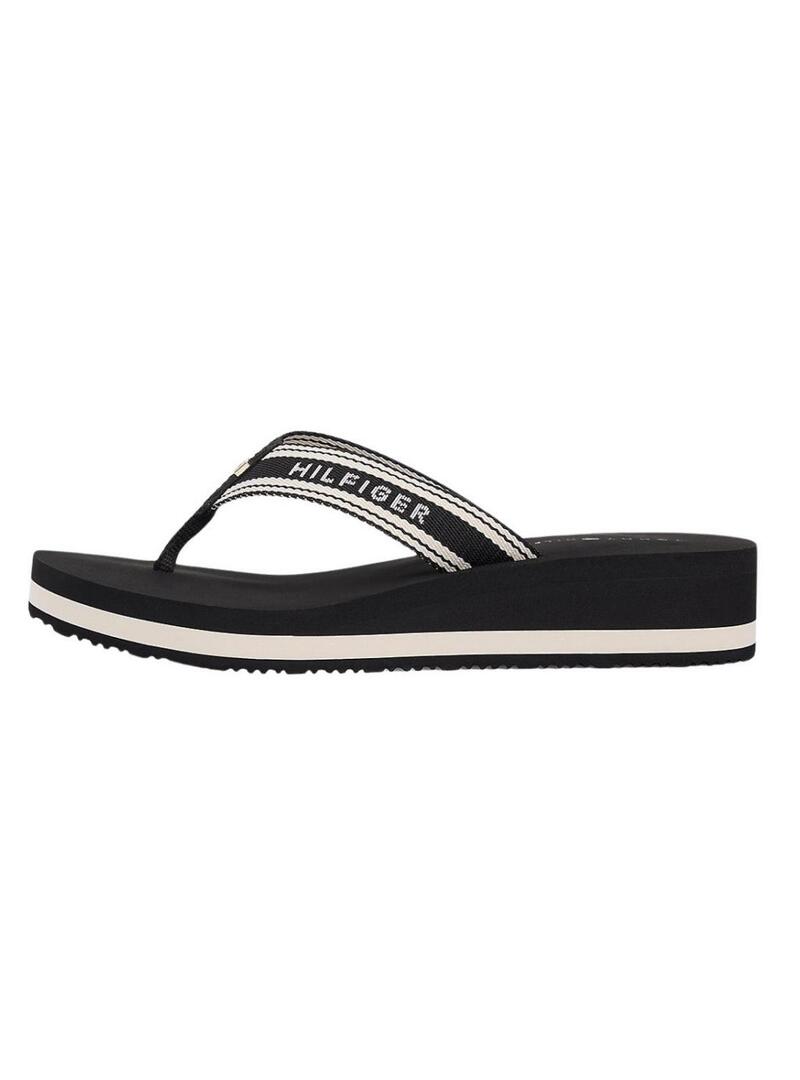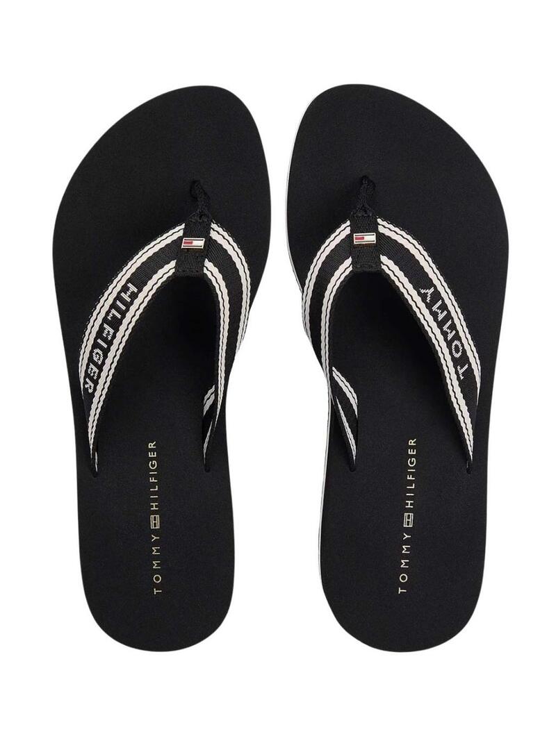 Chinelos Tommy Hilfiger. Cor preta. Sola de EVA. Exterior de poliéster. Tiras trançadas em Jacquard. Com cunha. Altura da sola de 3,8 cm. Detalhes distintos da Tommy Hilfiger.