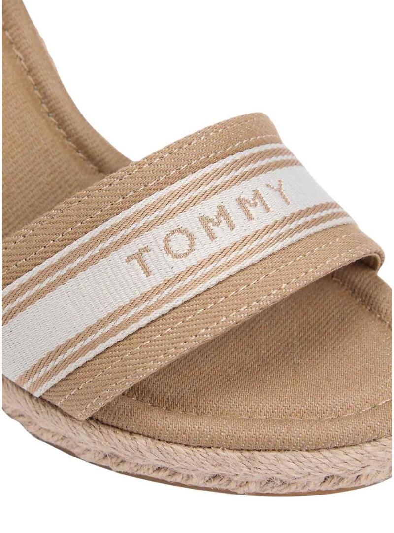 Alpargatas Tommy Hilfiger Webbing tostado com salto alto para mulher.