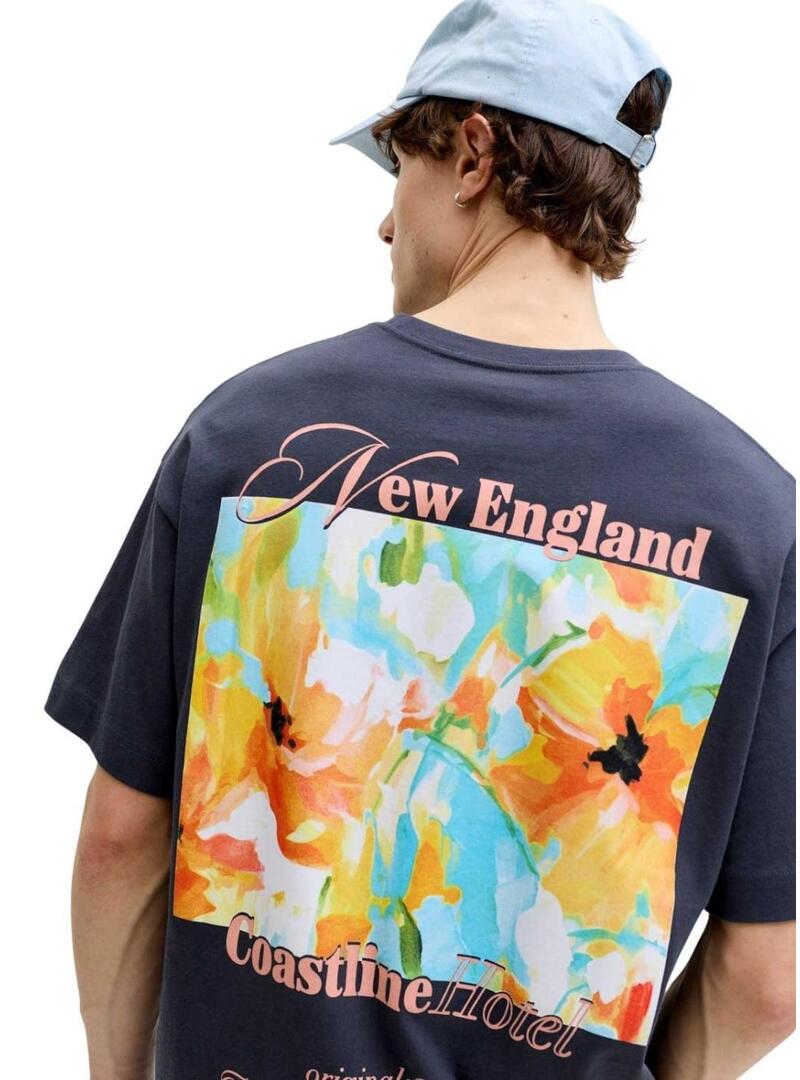 Camiseta Jack and Jones Hawaii Shape azul marinho para homem.
