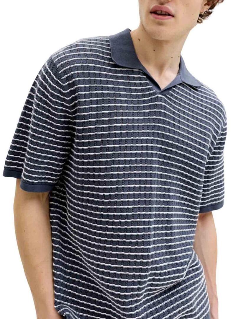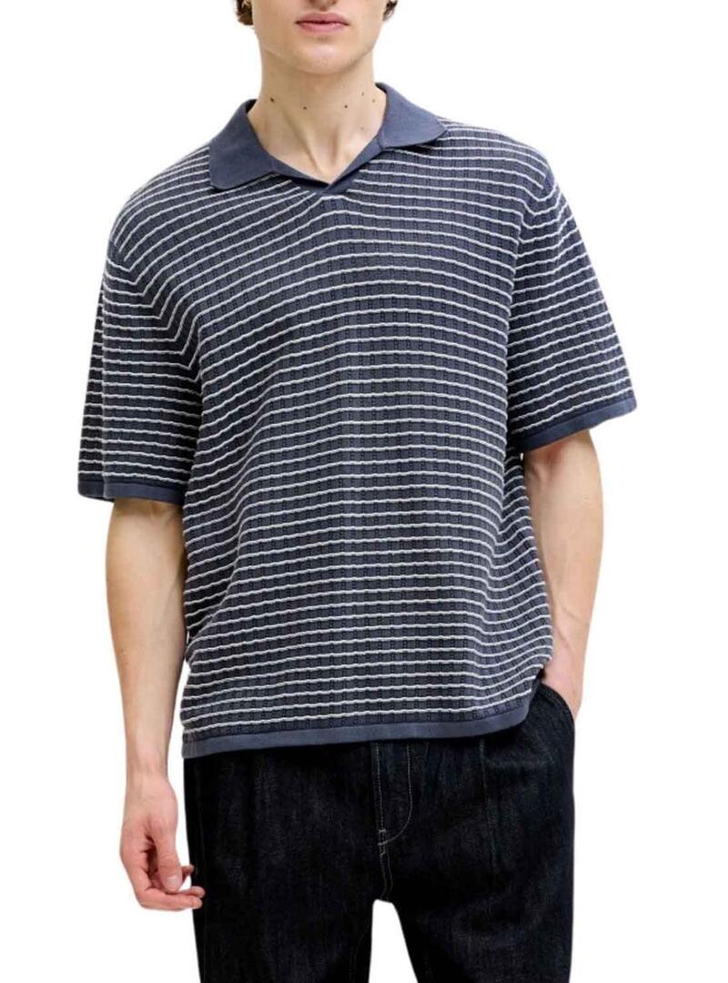 Camisa polo Jack and Jones Nantucket listrada azul para homens.