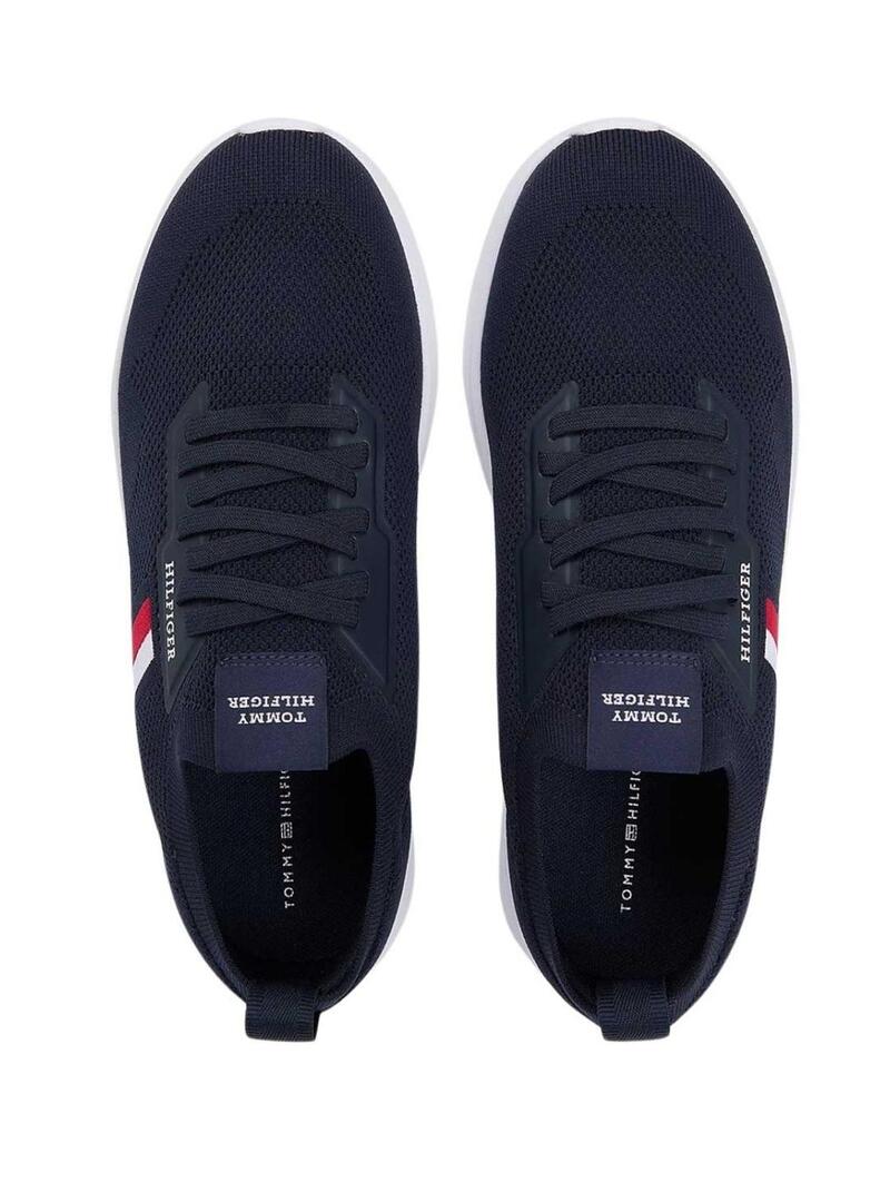 Sapatilhas Tommy Hilfiger. Modelo Kinitted Runner. Cor azul marinho. Parte superior em tecido elástico. Sola ultraleve de EVA. Fecho com cordões elásticos. Logo lateral. Banda com bandeira da marca.