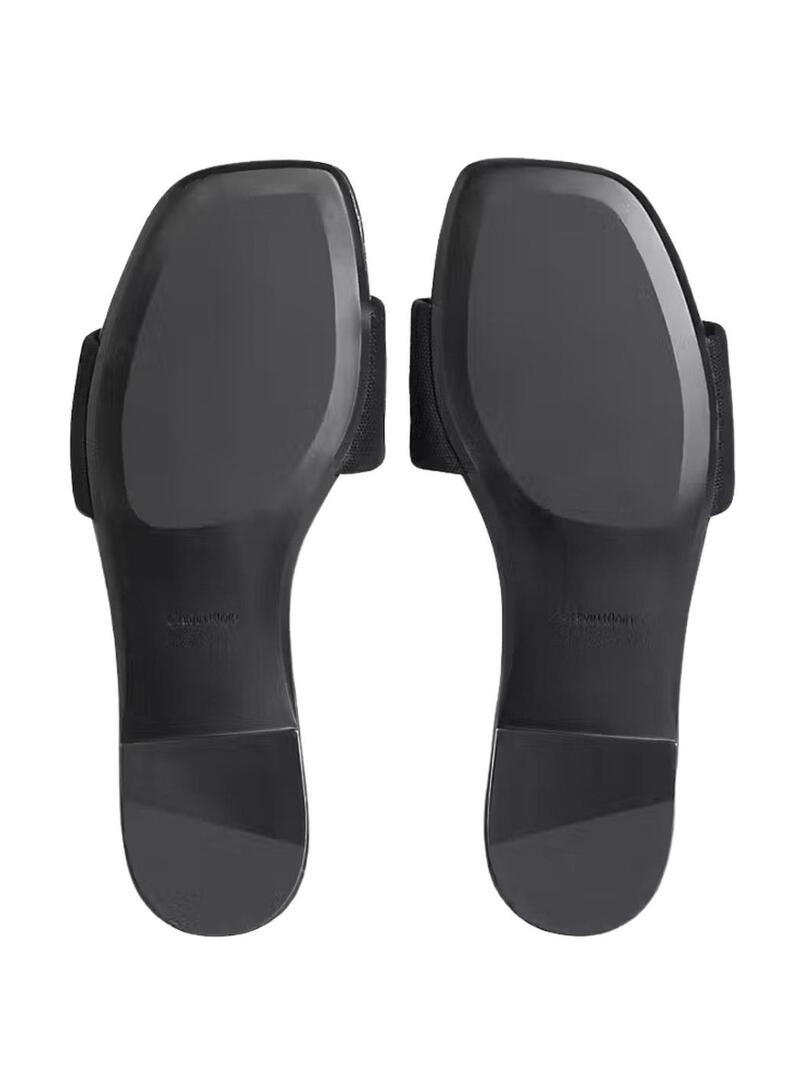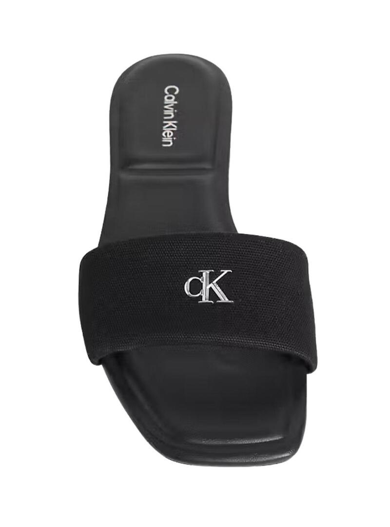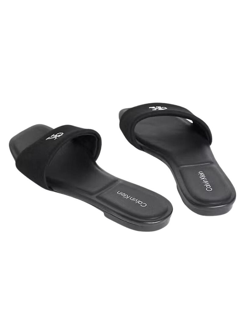 Sandálias Calvin Klein Jeans. Modelo Square. Cor preto. Estilo slide. Palmilha acolchoada com marca estampada. Bico quadrado. Sola extra plana. Faixa superior acolchoada com logotipo metálico em prata.