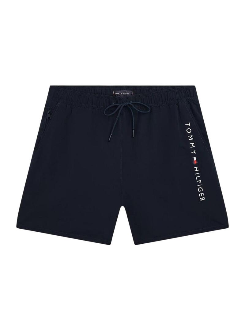 Fato de banho Tommy Hilfiger. Cor azul marinho. Cintura elástica com cordão. Bolsos laterais. Logo estampado lateral. Ajuste regular.