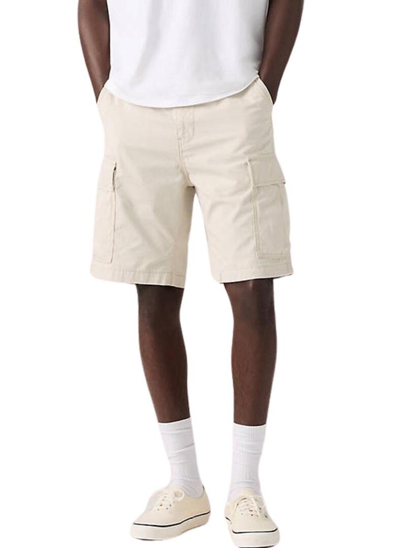 Bermudas Levis. Modelo Carrier Cargo. Cor bege. Fecho com botão e zíper. Comprimento acima do joelho. Bolsos laterais. Bolsos de carga. Bolsos traseiros com aba. Ajuste folgado.