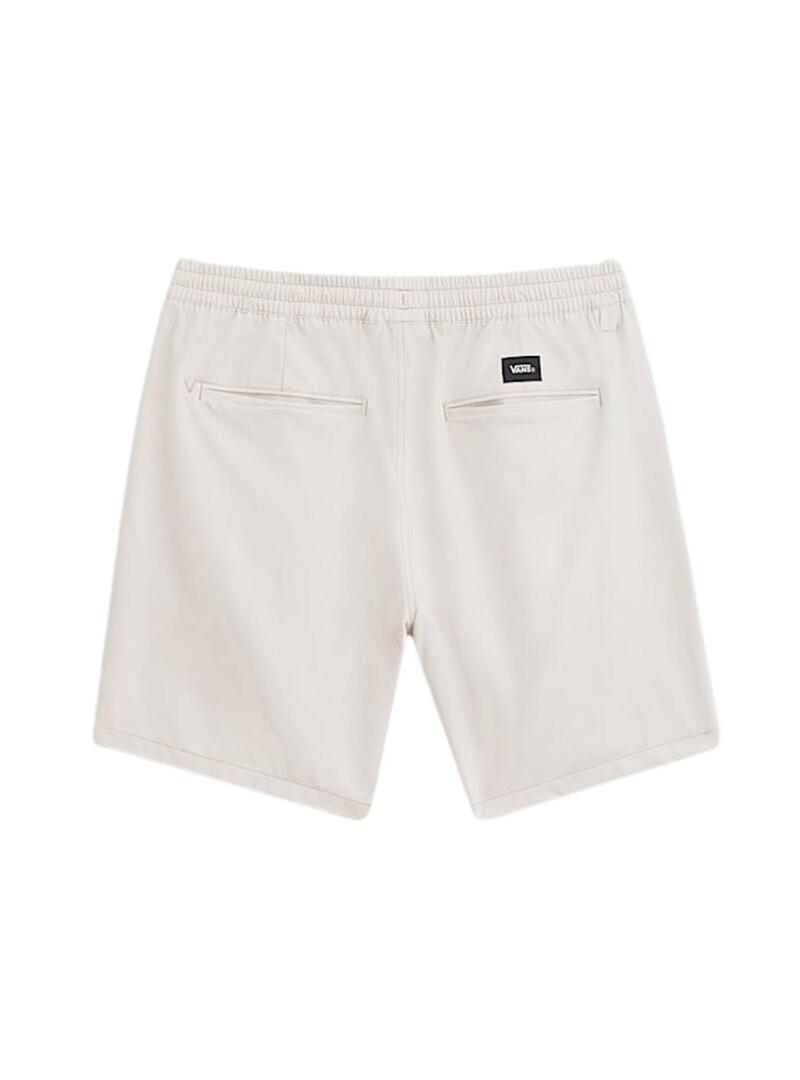 Bermudas Vans. Modelo Range. Cor bege. Cintura elástica. Bolsos laterais. Bolsos de vivo traseiros. Etiqueta bordada da marca. Ajuste folgado.