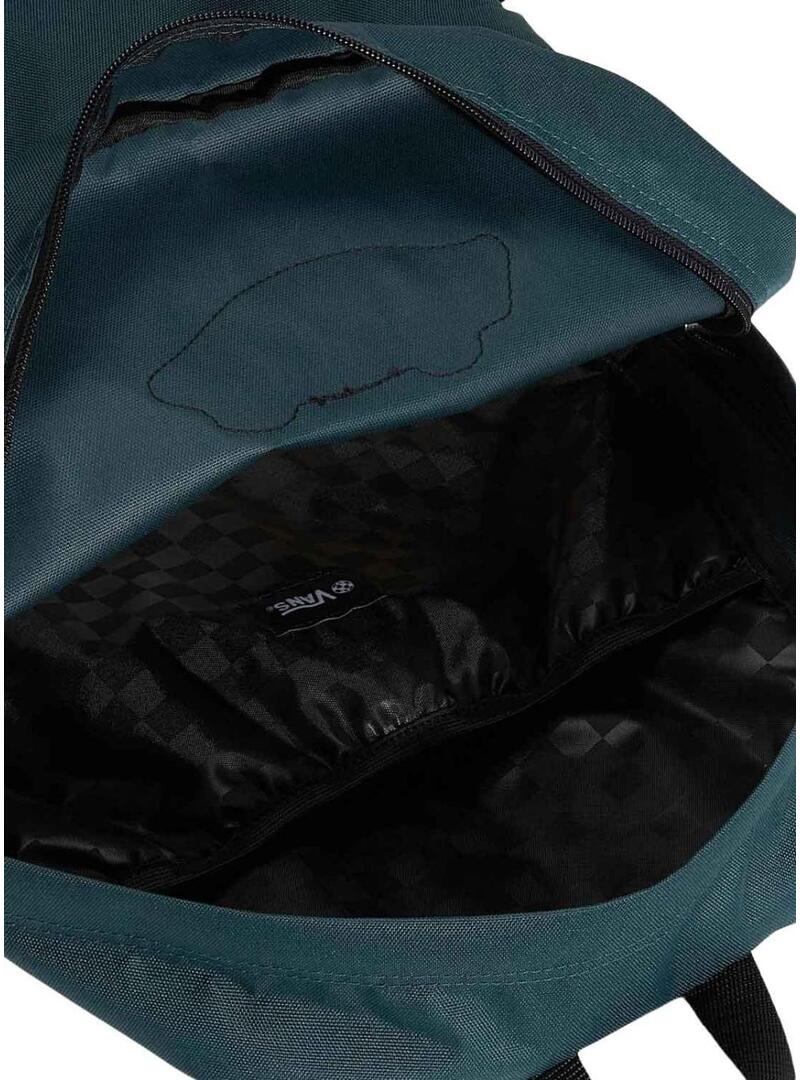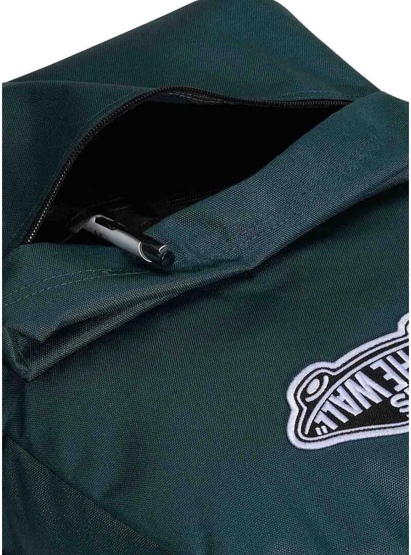 Mochila Vans. Modelo Old Skool Classic. Cor verde. Tecido liso. Fecho principal com zíper. Compartimentos laterais. Bolso exterior com zíper. Emblema da marca. Alça superior. Alças ajustáveis e acolchoadas. Capacidade de 22 litros. Medidas: 42,2 x 32,4 x 12,4 cm. Compartimento interno para laptop.