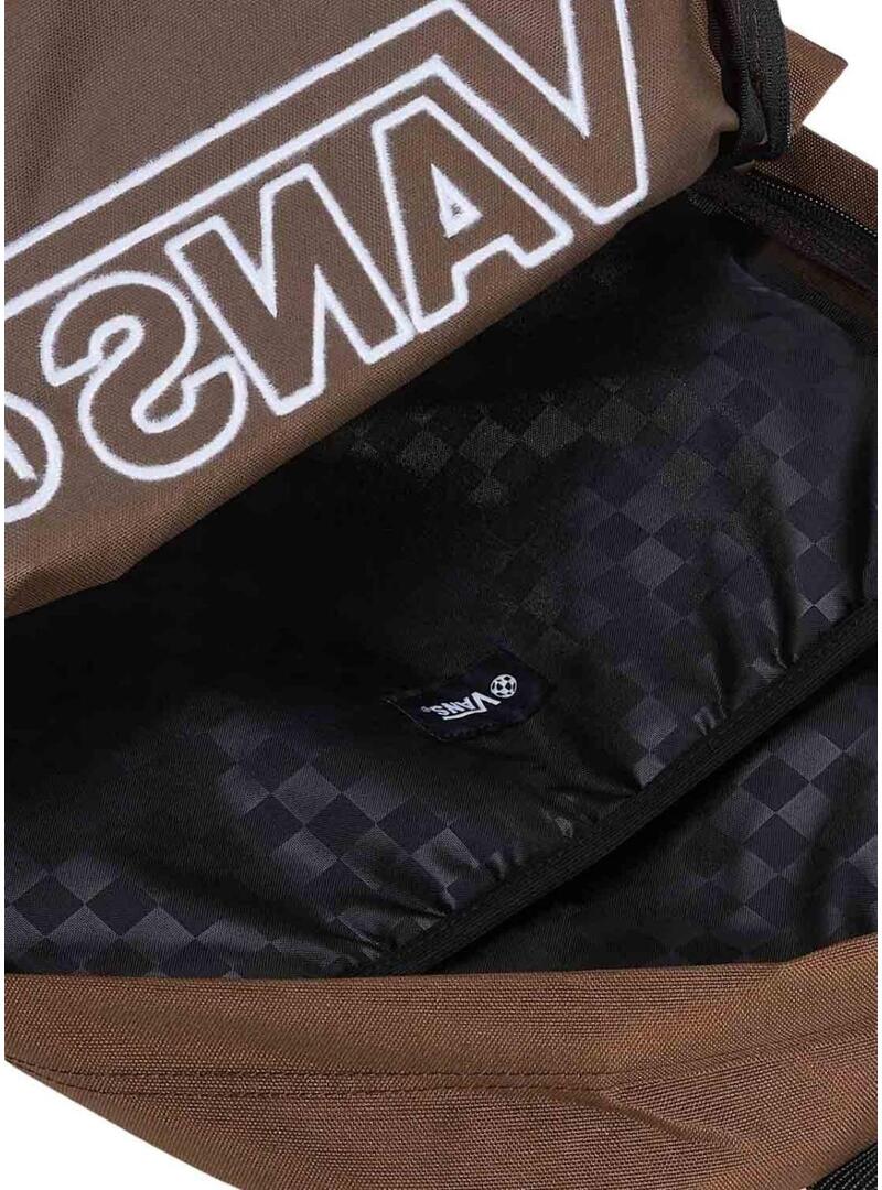 Mochila Vans. Modelo Old Skool Drop V. Cor marrom. Logo em branco. Zíper de fechamento. Bolso externo. Alça superior. Alças de ombro ajustáveis e acolchoadas. Capacidade de 22 litros. Bolso lateral para garrafa. Bolso interno para laptop de até 38cm. Dimensões: 41,9 x 32,4 x 12,7 cm.
