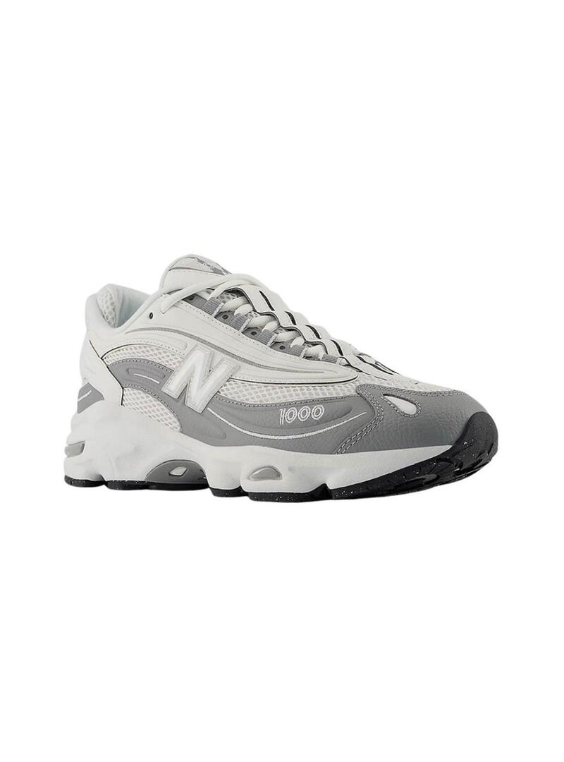 Tênis New Balance. Modelo U1000. Cor cinza. Fecho com cadarço. Sola de borracha com amortecimento ABZORB no calcanhar e na frente do pé, com um suporte Stability Web no arco do pé. Fecho com cadarço em um estilo futurista. Logo lateral.