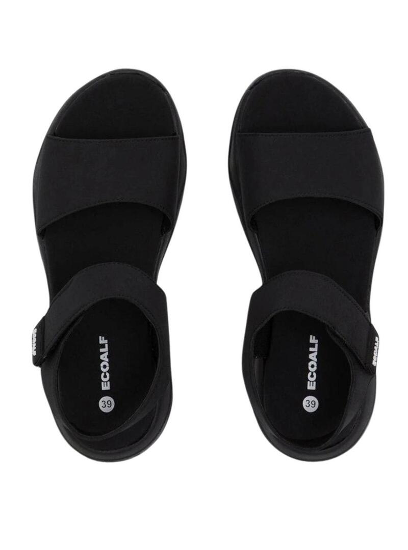 Sandálias Ecoalf. Modelo Carla. Cor preta. Fecho superior com velcro. Logo em relevo. Feitas em Sorona, um biopolímero derivado dos resíduos da produção de milho. Muito confortáveis e leves. Sola de borracha.