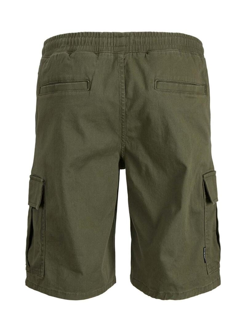 Bermudas Jack and Jones. Modelo Cole. Estilo cargo. Cor verde. Bolsos laterais com aba. Cintura elástica com cordão ajustável. Bolsos traseiros com aba. Tecido elástico.