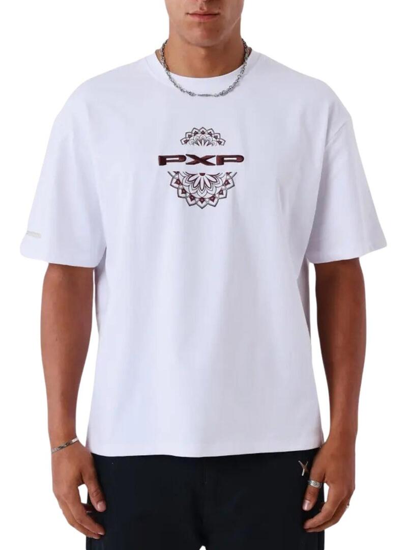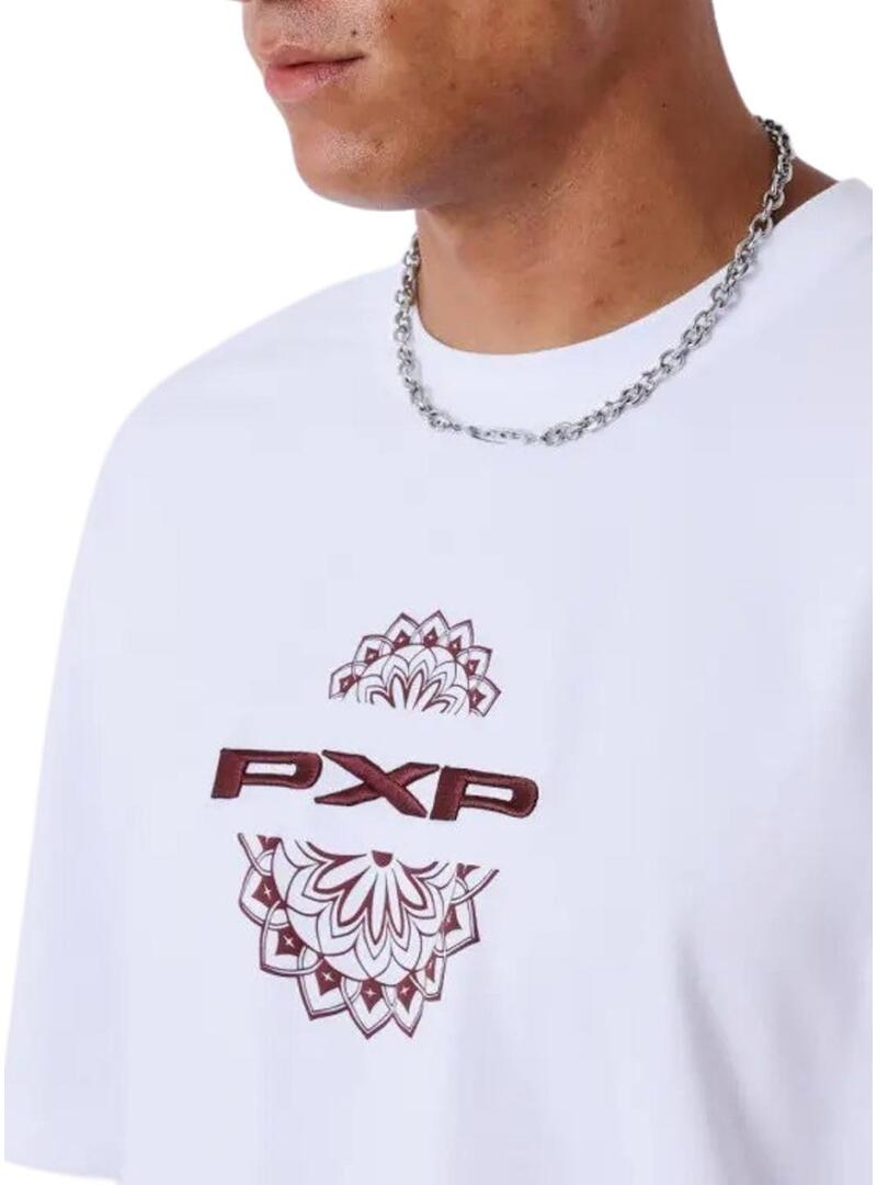 Camiseta Project x Paris. Modelo Change The Game. Cor branca. Logotipo bordado em bordô no peito. Ilustração mandala estampada no peito e nas costas. Manga curta. Gola redonda. Ajuste folgado.