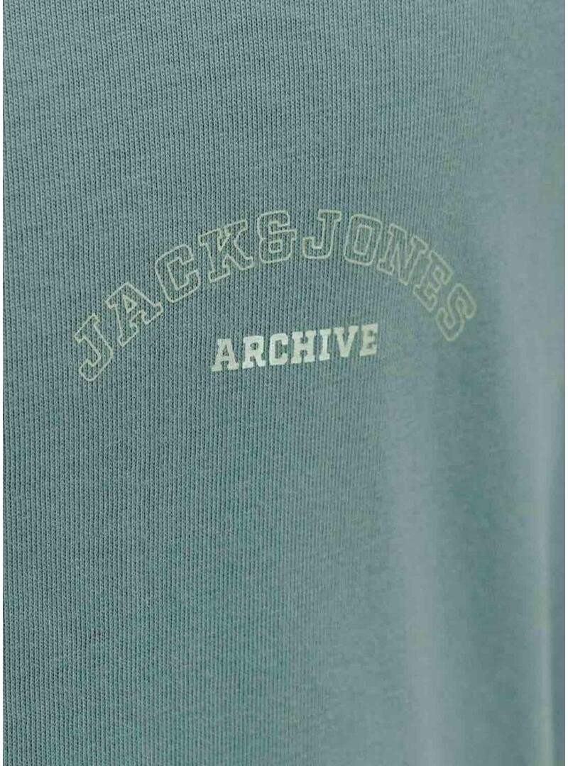 Camiseta Jack and Jones. Modelo College. Cor verde. Gola redonda canelada. Manga curta. Gráfico da marca estampado no peito.