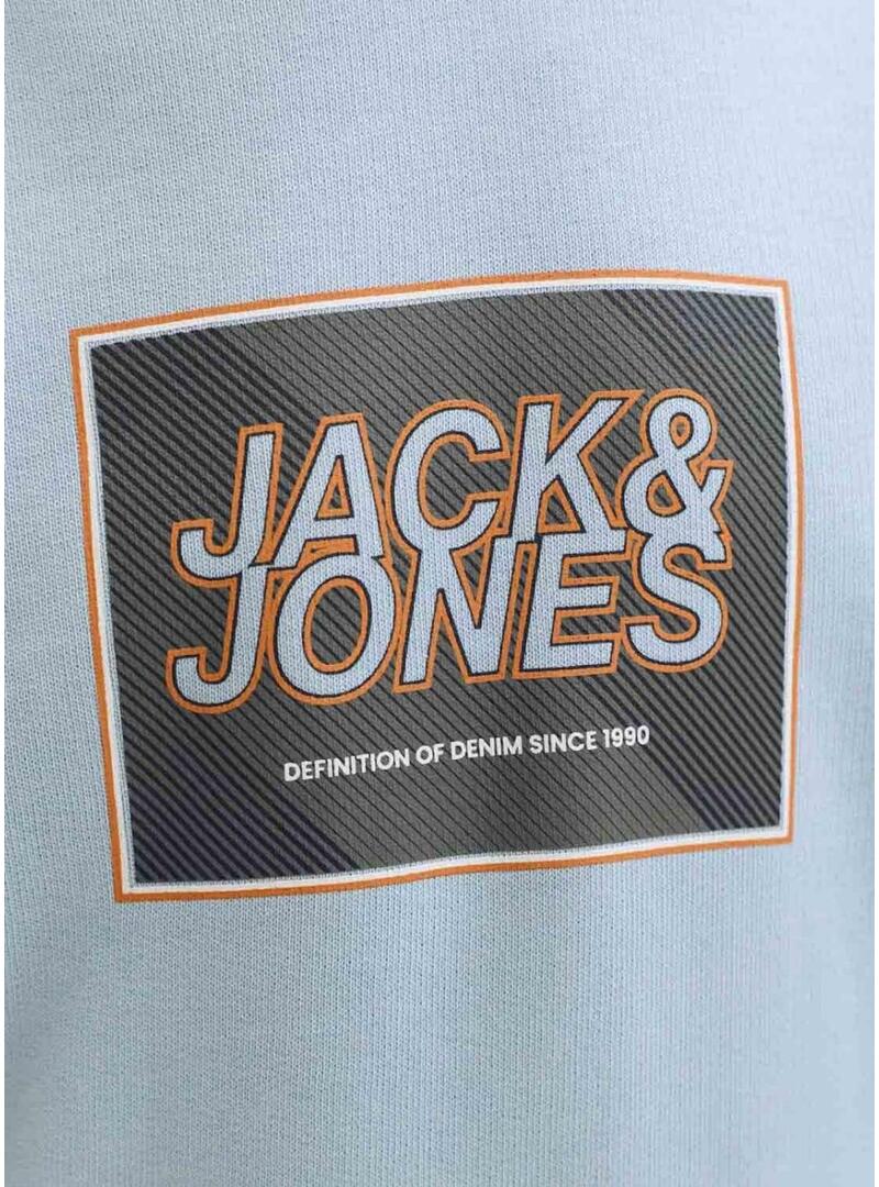 Moletom Jack and Jones. Modelo Rain. Cor azul. Com capuz. Gráfico da marca estampado no peito. Acabamentos canelados. Corte regular.