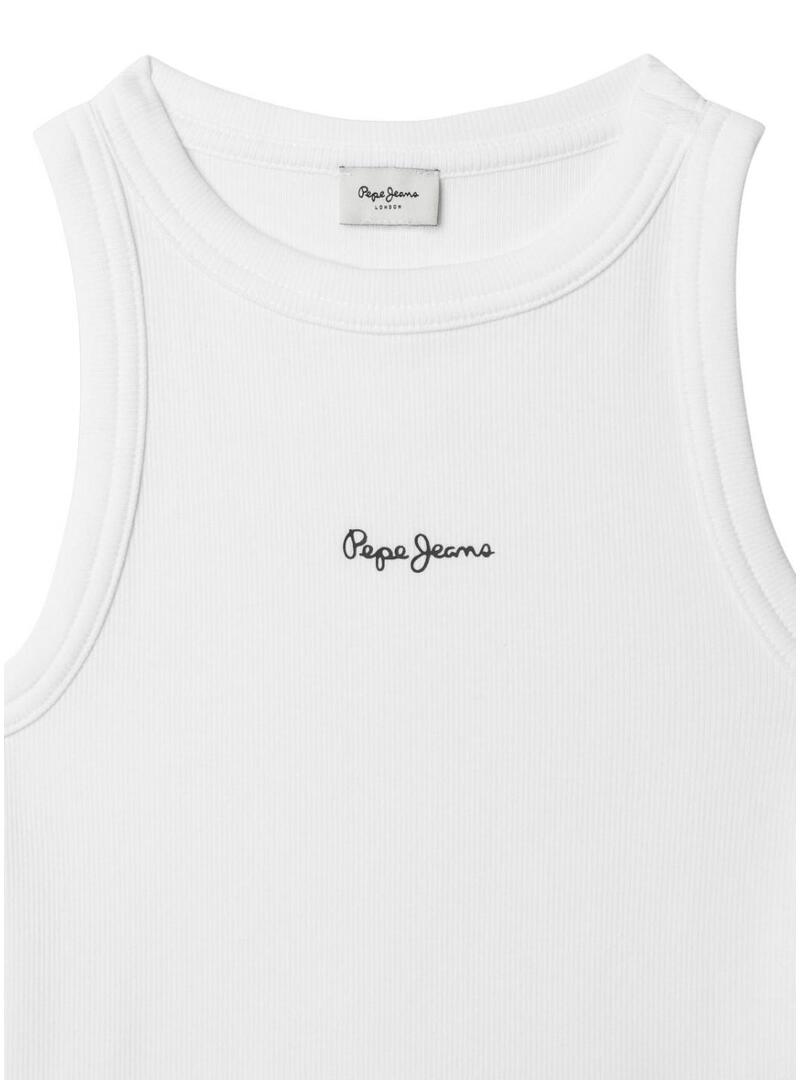 Camiseta Pepe Jeans. Cor branca. Sem mangas. Tecido canelado. Logotipo em contraste na parte da frente. Corte ajustado.
