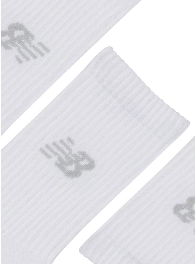 Pack de meias New Balance. Três pares. Cor branca. Comprimento até a panturrilha. Logotipo em cinza. Palmilha acolchoada. Tecnologia anti-odor e antibacteriana. Secagem rápida NB DRY mantém a umidade longe.