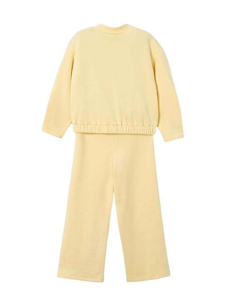 Conjunto Mayoral jaqueta e calças amarelo pastel para menina.