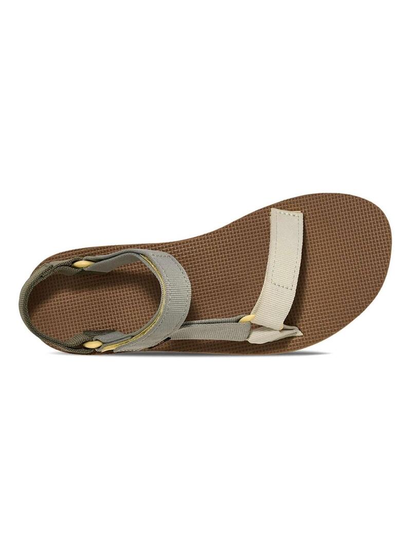 Sandálias Teva. Modelo Midform Universal. Cor verde oliva. Parte superior com fitas de secagem rápida. Múltiplas fitas ajustáveis com velcro. Etiqueta da marca lateral. Entressola de EVA moldada com calcanhar reforçado e suporte para o arco plantar. Tratamento anti-odor com base de menta. Veganas. Fabricadas em poliéster reciclado. Plataforma em cor marrom. Peso médio: 227 g.